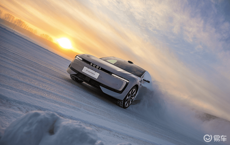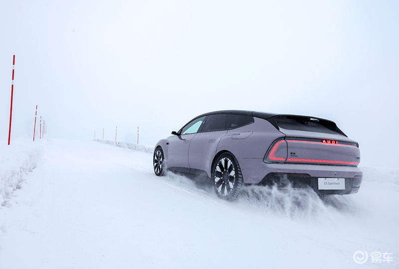 奥迪 E5 Sportback(旗舰quattro型)搭载前后永磁同步双电机,能够爆发出最大579 千瓦(787马力)和800牛·米的峰值扭矩,仅需3.4秒即可完成0-100km/h加速。冰雪之上,电驱系统瞬时、线性的扭矩输出特性,为精准控车提供了全新维度的可能。