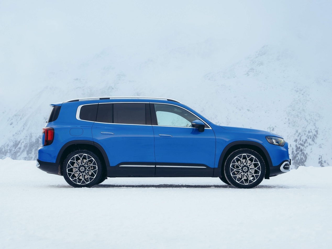 动力方面,首发车型提供GLB 250+与GLB 350 4MATIC两款纯电版本。前者搭载后置200kW永磁同步电机,WLTP续航达631km,实测城市通勤工况下续航达成率超90%,完全能覆盖跨城出行需求;后者新增前置80kW电机组成四驱系统,综合功率260kW,零百加速仅需5.8秒,兼顾性能与通过性。